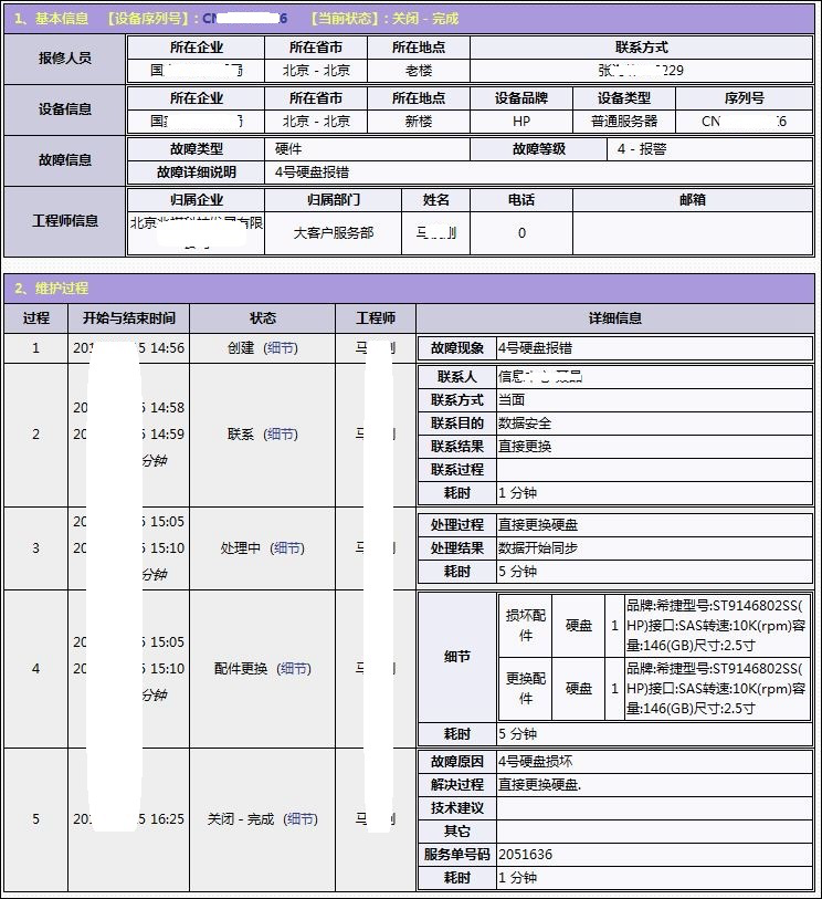 当用户设备出现问题,需要IT支持人员提供服务时,由专门的运维调度中心人员或IT支持人员,在运维模块中创建服务单。并且在维护过程中,IT支持人员将各种维护过程记录在系统中,甲乙双方管理人员均可随时进行查阅,监督服务执行状况。