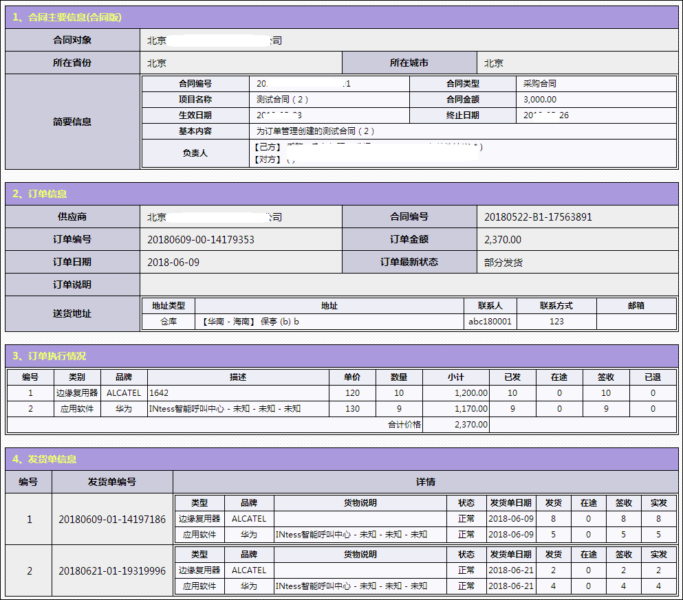 用于合同签订到仓库收货期间的货物交割管理和执行情况的追踪,为库存管理提供数据来源。主要功能有以下几部分: